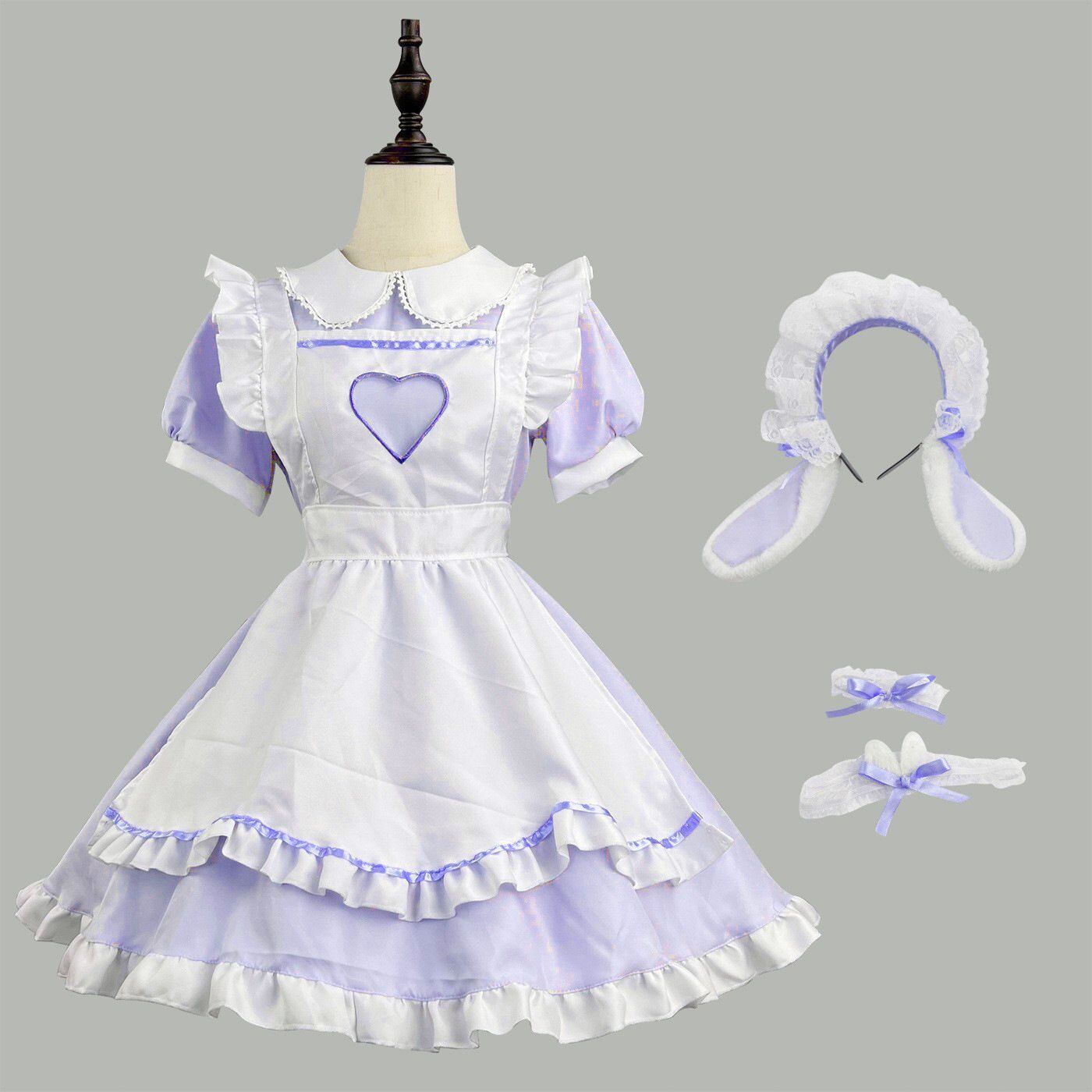 【セット内容】ワンピース+エプロン + カチューシャ+カフス(腕)*1点+ターリング*1点