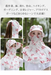 有害な紫外線が当たらないように顔、耳、首を保護して、アウトドア活動中にイライラする虫刺されを防止。 360度日焼け防止仕様!