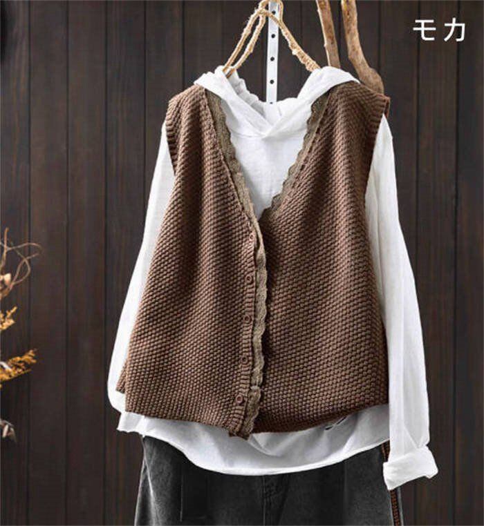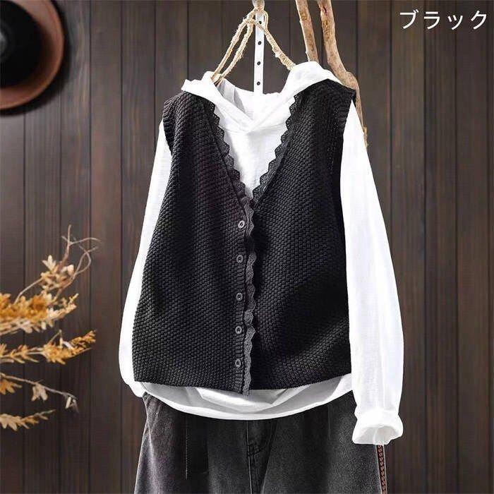 ニット ベスト レース レディース 新作 Vネック ノースリーブ ニットベスト 綿 無地 デザイン感 ジレベス コート 前開き 羽織り カーディガン ジレ コットン トップス カーデ ゆったり カジュアル 通勤 大人 体型カバー xzzhang214 | オキナ商店