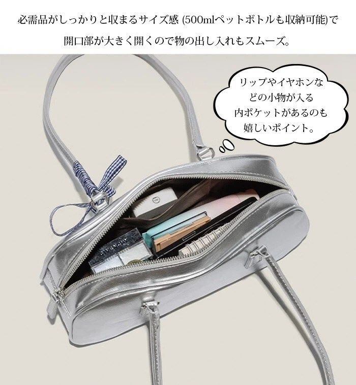 ショルダーバッグ バッグ メタリック横長オーバルボストンバッグ バレエコア バケットショルダーバッグ レディース 無地 雨 夏 春 大人カジュアル