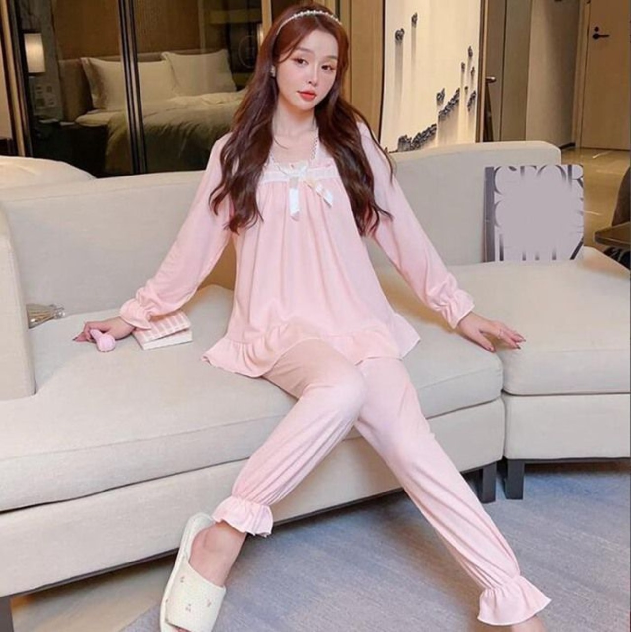 部屋着 レディース 長袖 ルームウェア レディース リボン付き シンプル 上下セット セットアップ かわいい 可愛い ルームウェア 着痩せ 上下 春 夏 肌触り ナイトウェア 大人 春秋 ゆったり 柔軟 優しい着心地 オシャレ快適ルームウエア xzxiaoyun280