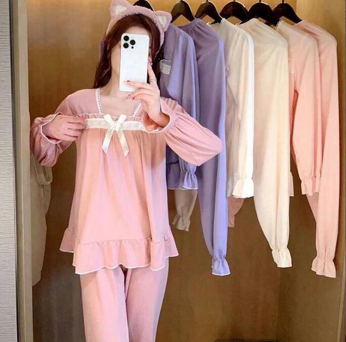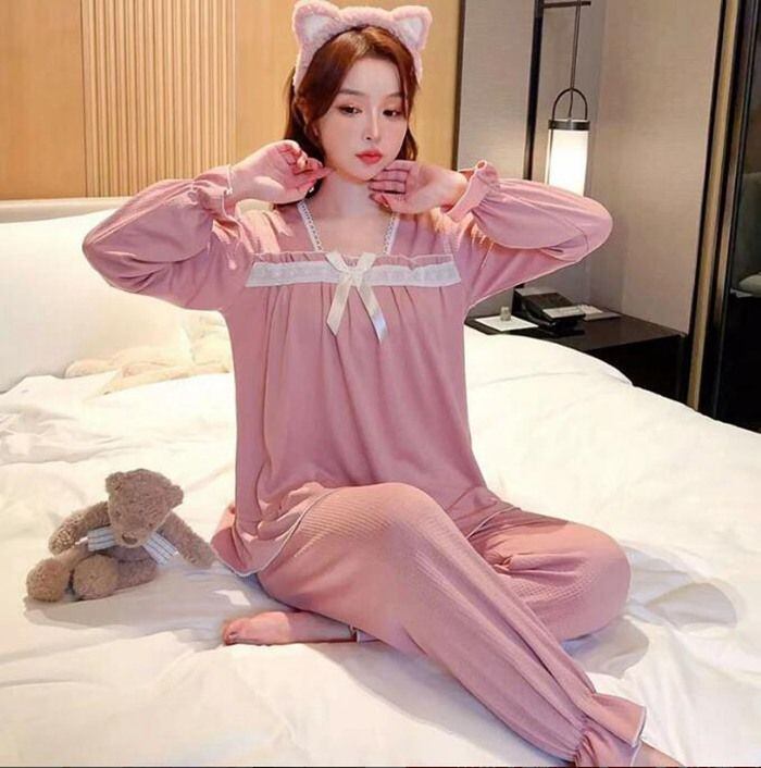 部屋着 レディース 長袖 ルームウェア レディース リボン付き シンプル 上下セット セットアップ かわいい 可愛い ルームウェア 着痩せ 上下 春 夏 肌触り ナイトウェア 大人 春秋 ゆったり 柔軟 優しい着心地 xzxiaoyun280 | オキナ商店