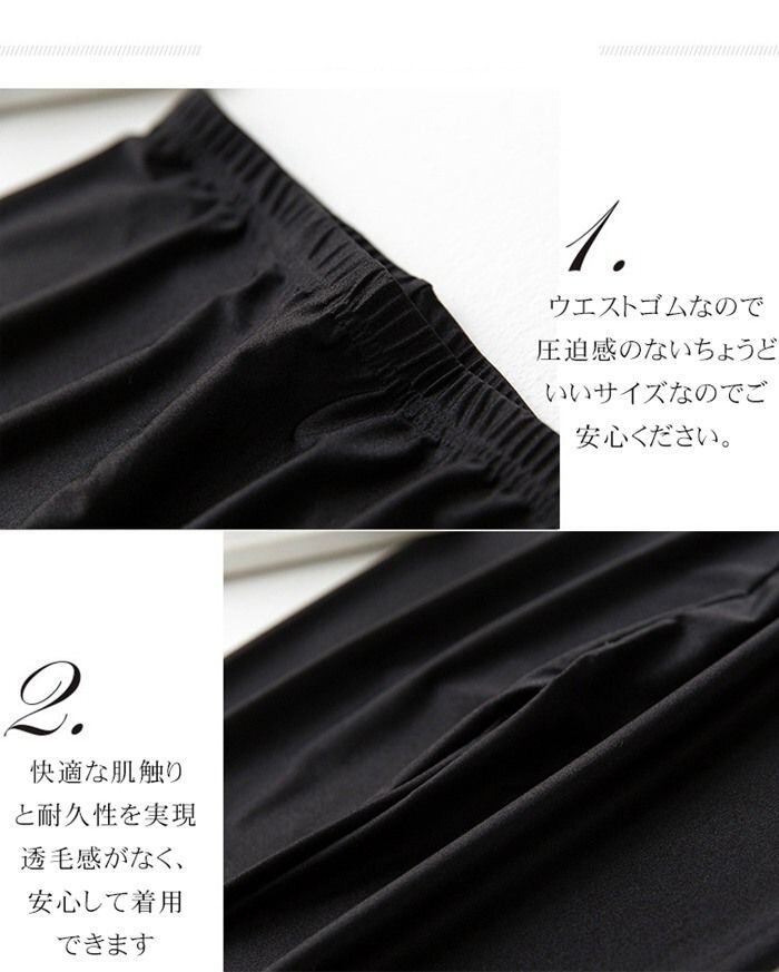 脚が長く見える効果があると言われています。肌の露出をしっかり抑え、体型カバーもバッチリ!