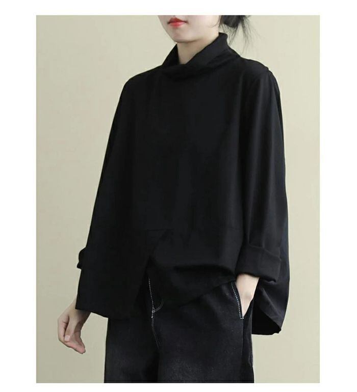 カットソー 長袖 レディース ハイネック トップス カジュアル 綿混紡 バックギャザー プルオーバー スリット Tシャツ 無地 ゆったり プルオーバー プチハイネック ギャザー 切り替え トレーナー スウェット xiaokb254 | オキナ商店