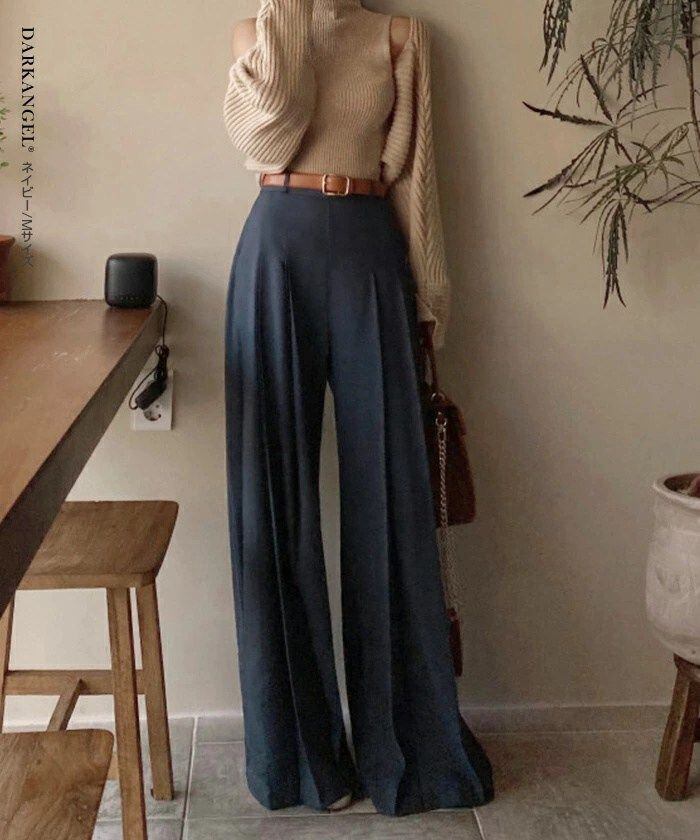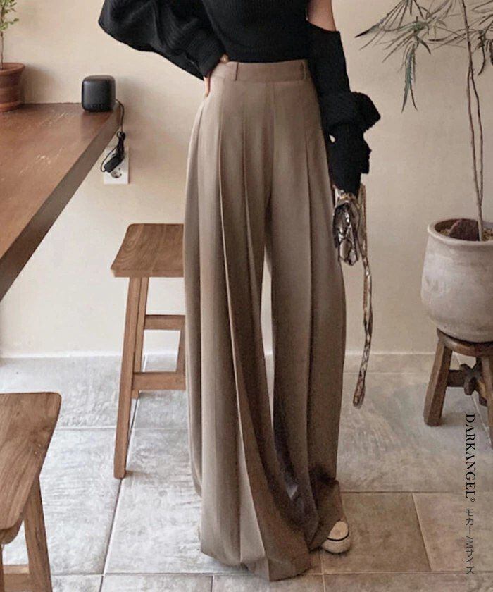 ボトムス パンツ ハイウエスト プリーツ 美脚 ゆったり ワイドパンツ レディース フレアパンツ ロング丈 ガウチョパンツ スカーチョ 通勤 オフィス きれいめ カジュアル オシャレ 春 【美脚ハイウエストワイhyxz06 | オキナ商店