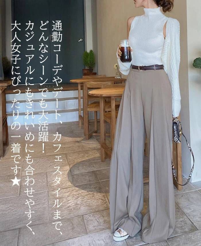 ボトムス パンツ ハイウエスト プリーツ 美脚 ゆったり ワイドパンツ レディース フレアパンツ ロング丈 ガウチョパンツ スカーチョ 通勤 オフィス きれいめ カジュアル オシャレ 春 【美脚ハイウエストワイドパンツ】カリス