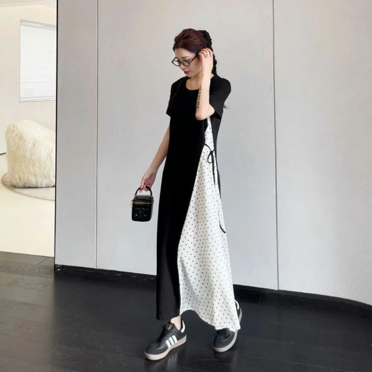ワンピース 半袖 レディース 春 夏 春夏 ドット柄 tシャツワンピース ワンピース ワンピ tシャツ 大きいサイズ 半袖ワンピース ロング
