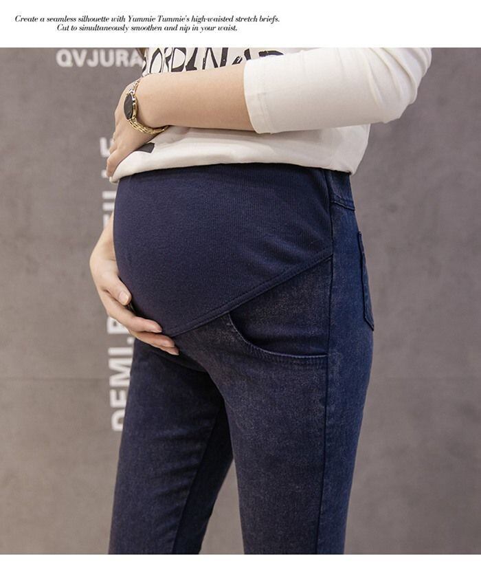 高いストレッチ性と吸い付くようなフィット感で、穿き心地の良いマタニティーデニムパンツです。