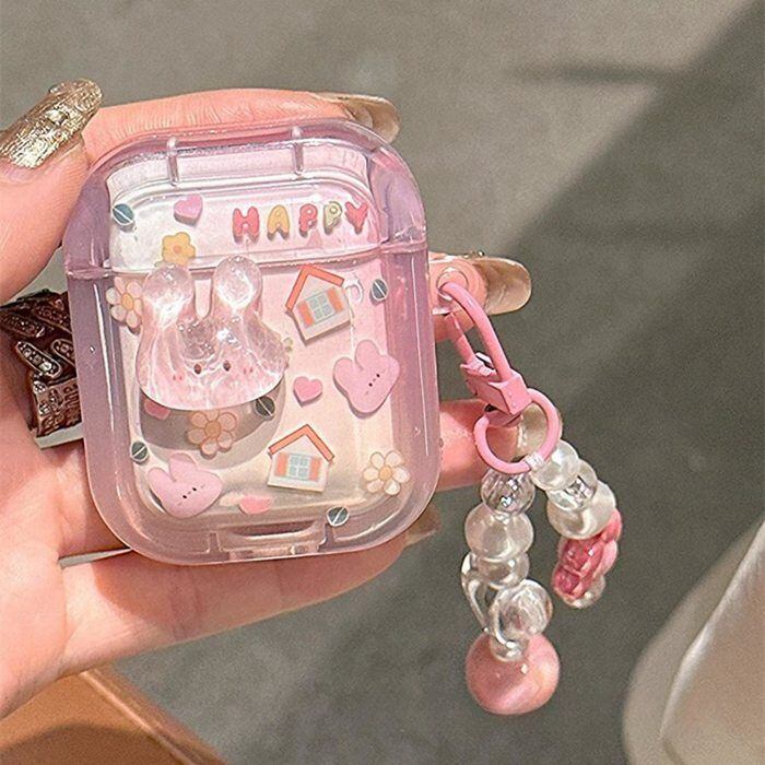 うさぎ柄 かわいい イヤホンケース ブルートゥース 紛失防止 エアポッズ ポーチ 小物入れ 収納ポーチ カラビナ付き ケース AirPods Pro 2 3 4xzzhang209