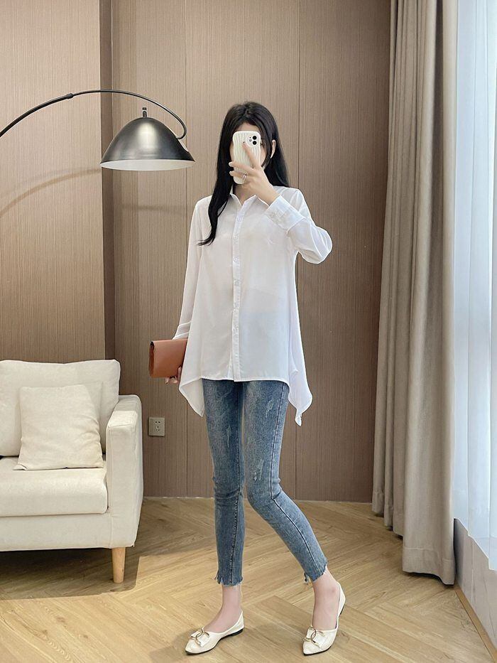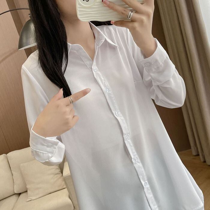 シャツ レディース 長袖 ロング チュニック ロングシャツ 春 夏 秋 冬 ワイシャツ 襟付き aライン 大きいサイズ ゆったり 透け感 重ね着 オーバーサイズ フォーマル オフィス カジュアル ビジネス 大人 OL 無地 黒 ブラック 白 ホワイトyilian20