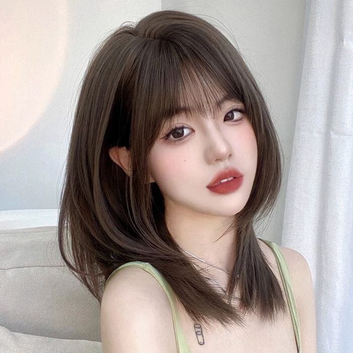 ウィッグ セミロング ストレート ロング ミディアム フルウィッグ ロリータ wig コスプレ サラサラ ぱっつん 女性 小顔 自然 ネット付き アッシュブラウン