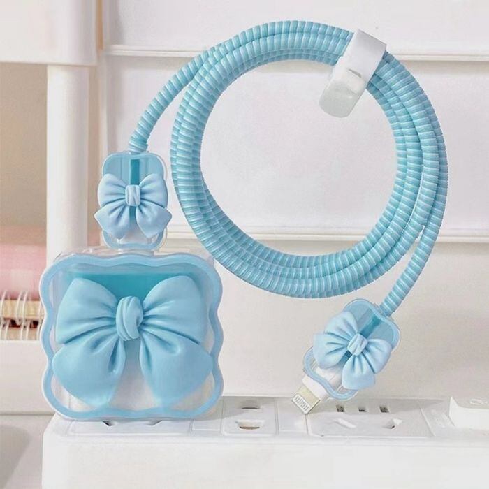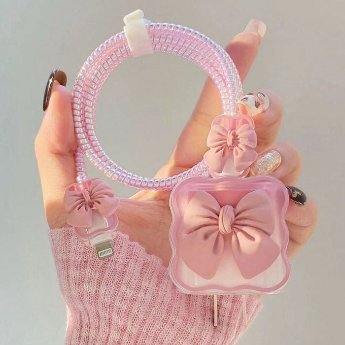 iPhone iPad 18W/20W充電器用 ケーブルカバー カワイイ蝶結び プロテクター アダプタ 保護 キズ防止 耐衝撃 落下防止 防塵 断線防止 充電 18w 20w かわいい リボン lightning