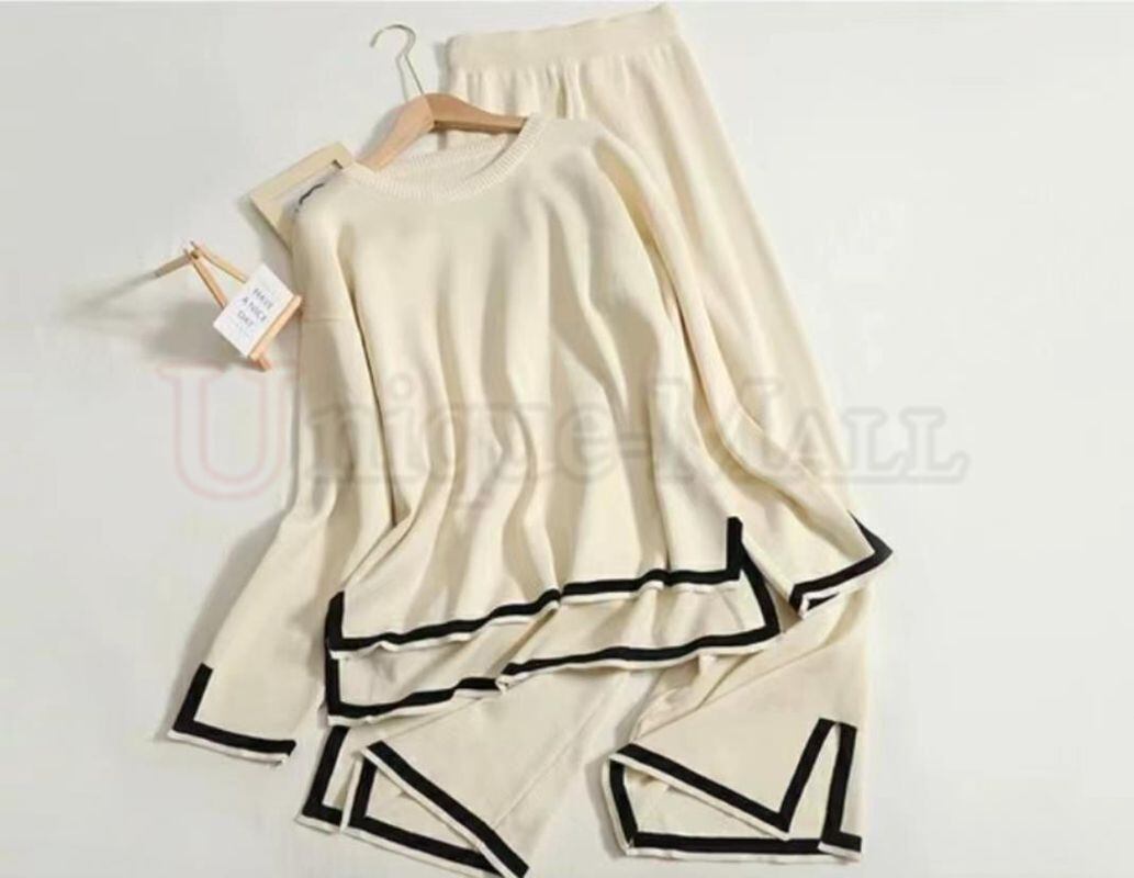 セットアップ レディース きれいめ ニット 長袖 コーデ パンツ ゆったり セーター ニットアップ ワイドパンツ ニットパンツ ハイウェスト ゆったり 洗える トレンド 上下セット 着?せ shangjiao01 | オキナ商店