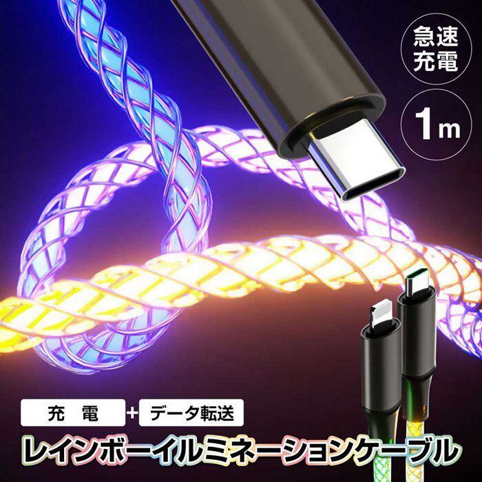RGBイルミネーションケーブル 光る充電ケーブル 3type 急速充電ケーブル ライトニングケーブル 急速充電 車内 LED 流れるライトニングケーブル データ転送 高耐久 jykj02 | オキナ商店