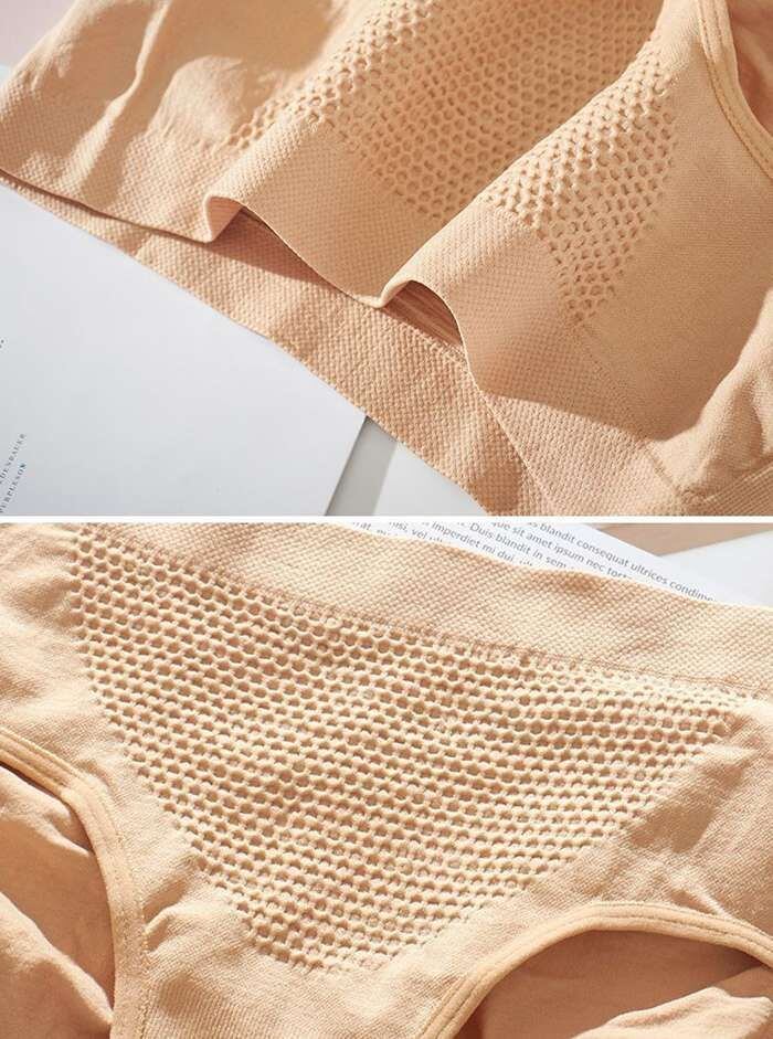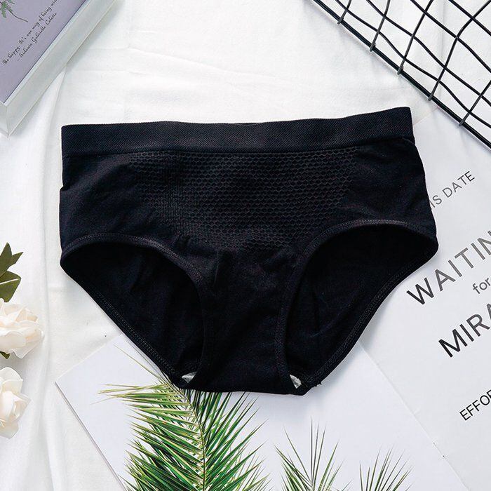 シンプルデザインのレディース用ショーツです。 熱を蓄えやすい蜂の巣のような不思議なデザインで、お腹周りを温め子宮の冷え予防に◎ ヒップ部分は自然なフォルムを崩しにくい立体構造になっています♪