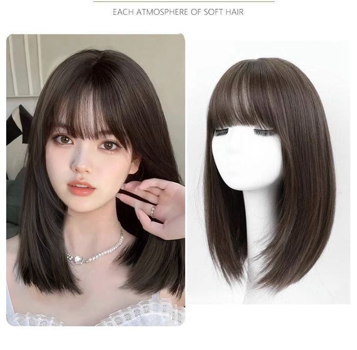 ウィッグ セミロング かつら 女性 フルウィッグ 女装 ウィッグ ミディアム ストレート レディース wig 自然 小顔 耐熱 レイヤー ネット付き ダークブラウン
