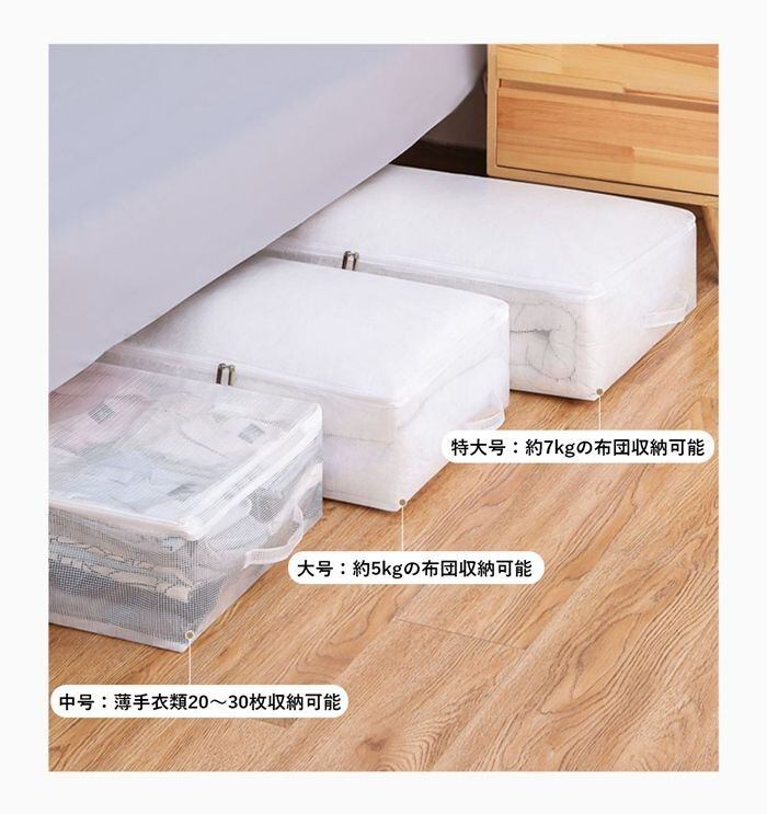 【大容量】クローゼットや寝室のベッド下、棚の上、ソファの下など、様々な場所に収納することができます。託児所や寮などの大量の収納が必要になるような場所でも大活躍します。衣類、毛布、靴、掛け布団、シーツ、寝具、ぬいぐるみ、枕、セーター、本、Tシャツ、ぬいぐるみなど、様々なものを収納できます。