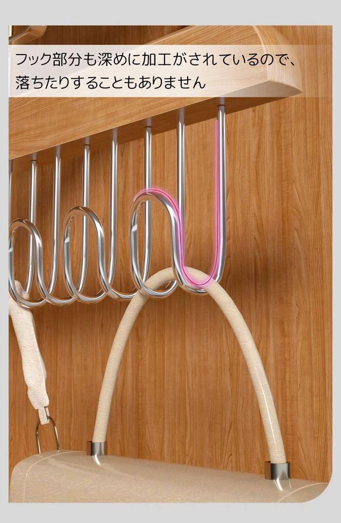 フックが8個付いているので、ベルトやネクタイだけでなく、ブラジャー、サスペンダー、スカーフ、ネックレスなどのアクセサリーも掛けられます。