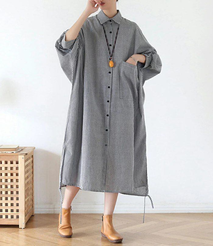 ロングシャツ レディース ストライプ ワンピース ロング丈 大きいサイズ シャツワンピース 長袖 羽織り ストタイプシャツ ワンピ 切り替え ドルマンスリーブ 体型カバー 着痩せ シャツ ロングワンピースxiaokb236 | オキナ商店