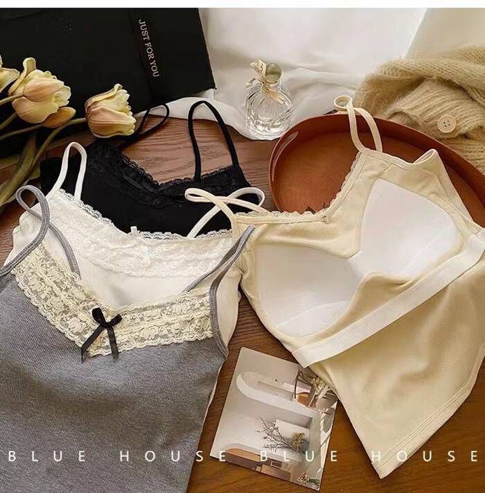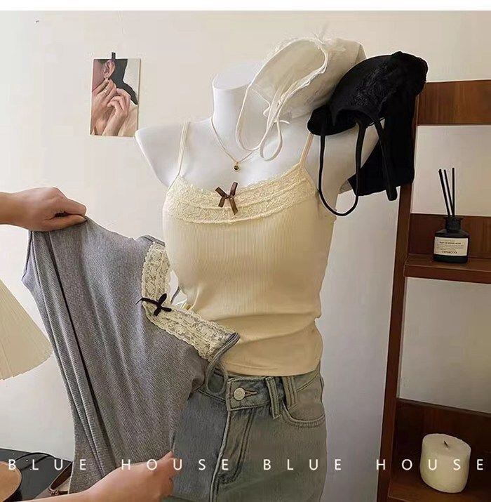 キャミソール カップ付き レデイース レース ブラジャー リボン カップ付きインナー ノンワイヤー 下着 ルームウェア トップス インナー 肌着 女子 大人 かわいい 体型カバー 薄手 aodaiya04☆DZ20 | オキナ商店