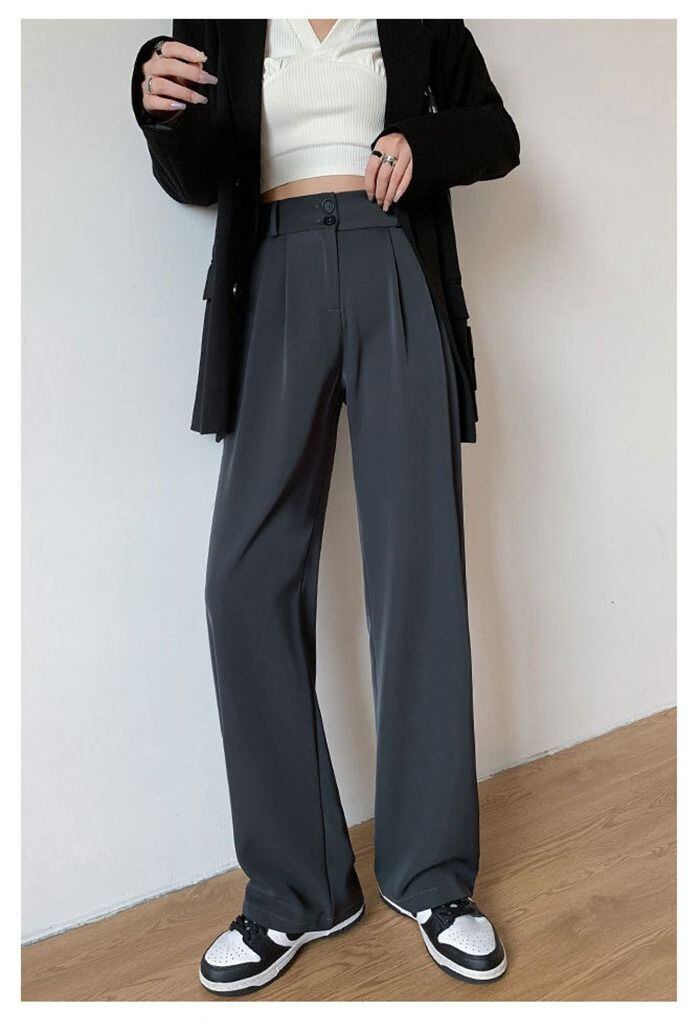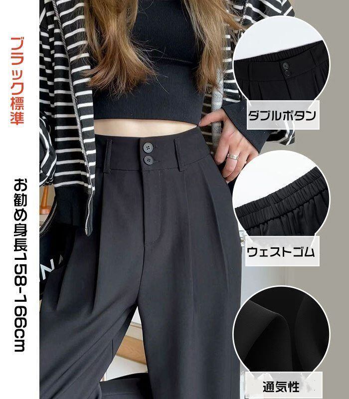 ハイウエスト 薄手 涼感 美脚 脚長 ストレートパンツ レディース ボタン ワイドパンツ 女性 ボトムス ワイド パンツ ハイウエストパンツ ズボン 長ズボン ロングパンツ スリム スタイルアップ ウエストゴム ゆったり おしゃれ 軽量ruitong10