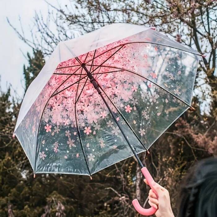 1本の桜柄プリント傘 - キュートなスタイル 防水 手動開閉 8本骨スチールフレーム プラスチック製キャノピー&ハンドル 鉄製シャフト - 雨天や晴天の屋外使用に最適 xzzhang163 | オキナ商店