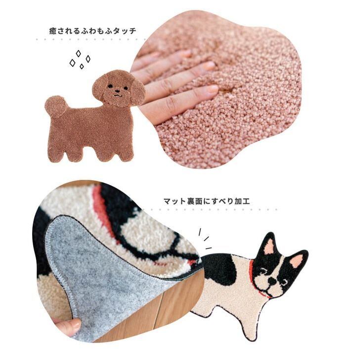 足元を楽しく、かわいくしてくれるミニサイズのラグ「ファンディット アニマル」シリーズ。 ふかふかのやわらかな毛足とほっこりするアニマルモチーフのマットは洗面所や水回りはもちろんベッドサイドや玄関いろいろな場所で活躍してくれます。可愛い動物のデザインで目にするたびについ笑顔に。ちょっとしたプレゼントやプチギフトにもおすすめです。 裏面はすべり止め加工。丸洗いOK。(※お洗濯の際は洗濯ネットをご使用ください。)