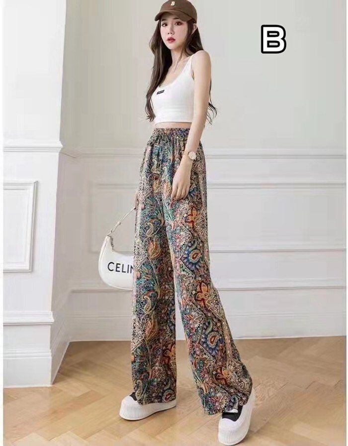 ワイドパンツ レディース 接触冷感 夏 薄手 UVカット UV 涼しい 快適 花柄 総柄 柄パンツ イージーパンツ ロング ワイド ガウチョ ロングパンツ ボトムス ズボン 長ズボン ウエストゴム ゆったり リゾート 旅行mingpai10 | オキナ商店