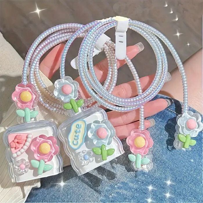iPhone iPad 18W/20W充電器用 ケーブルカバー カワイイ 花柄デザイン プロテクター アダプタ 保護 キズ防止 耐衝撃 落下防止 防塵 断線防止 充電 18w 20w かわいい フラワー lightning