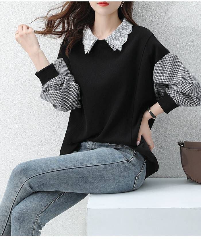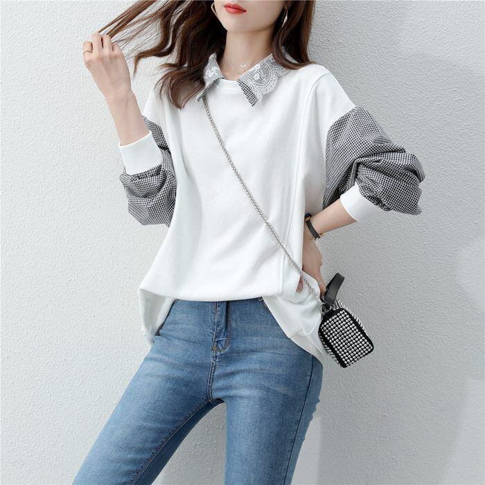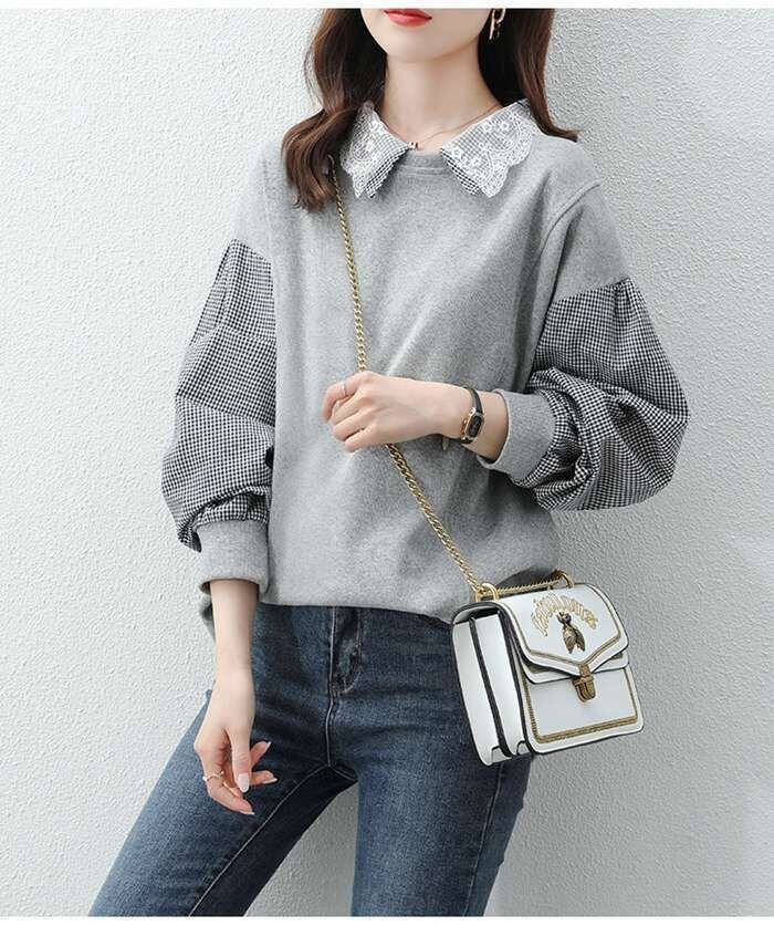 スウェット パーカー レディース 春 秋 長袖 切り替えトップス チェック プルオーバーパーカー カジュアル 大きいサイズ 着痩せ 送料無料