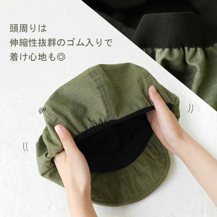 頭周りは伸縮性抜群のゴム仕様でしっかりフィット!