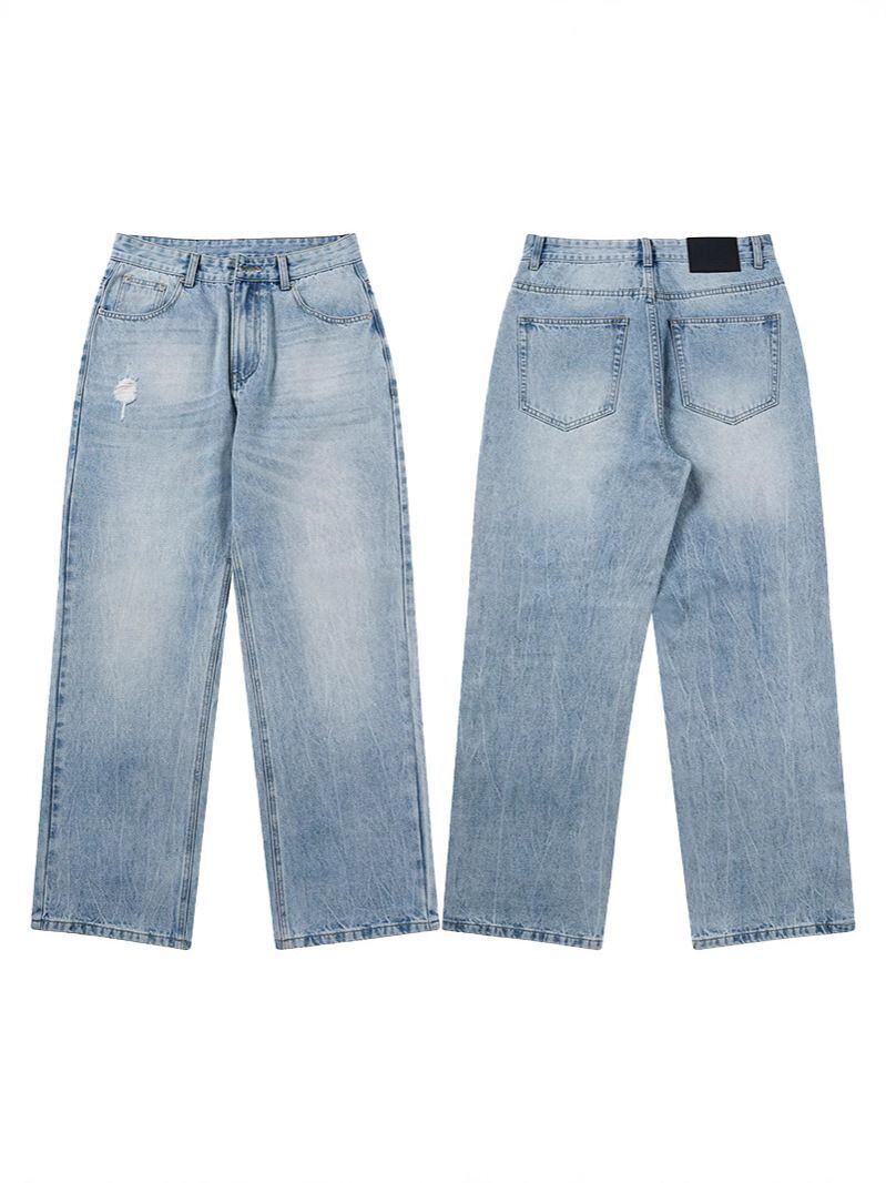 ワイド デニムパンツ メンズ ストレートジーンズ バギー パンツ 大きいサイズ M-2XL ゆったり カジュアル 無地 リラックス カッコイ イジーンズ ジーパン Gパン mingda26 | オキナ商店