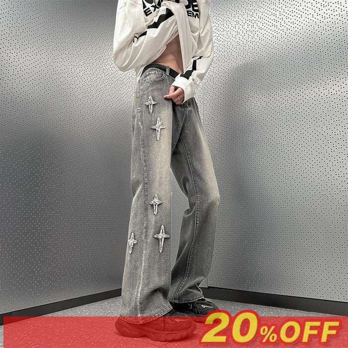 デニムパンツ メンズ ジーンズ ジーパン デニム ワイドパンツ ロングパンツ ボトムス シンプル カジュアル おしゃれ パンツ ゆったり 通勤 通学 大人 春 夏 秋 冬 wslf06☆DZ20 | オキナ商店