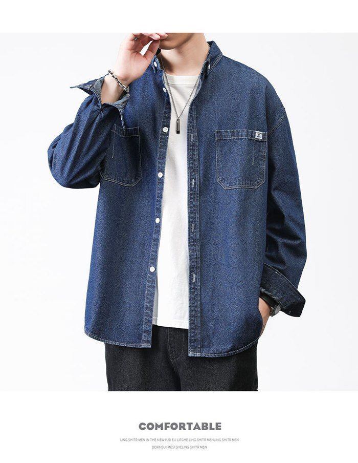 デニムシャツ メンズ 長袖 大きいサイズ M-2XL 全3色 アメカジ 春 ワークシャツ シャツ 無地 30代 40代 50代 60代 メンズファッション カジュアル オシャレ かっこいい 大人 mingda39 | オキナ商店