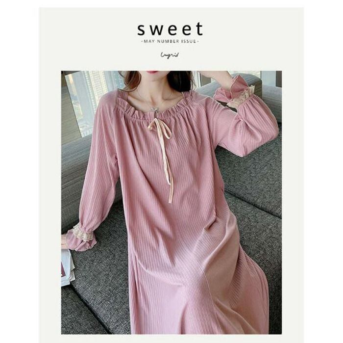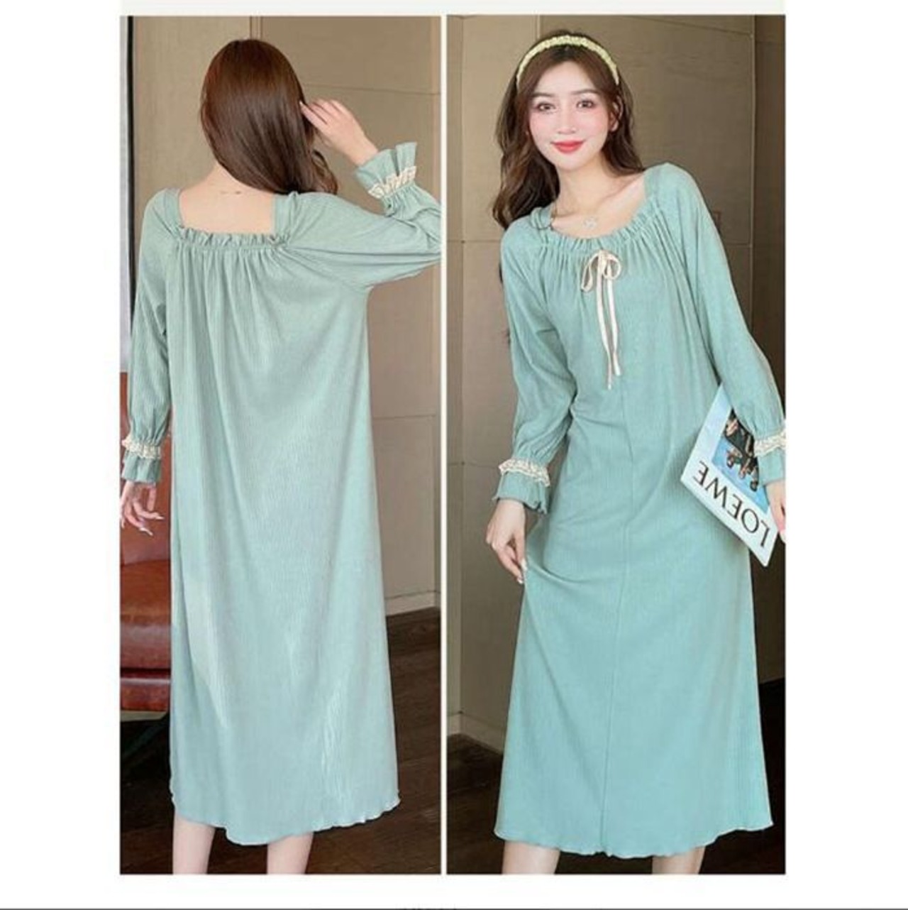 ネグリジェ パジャマ レディース 春秋新作 長袖ワンピース パジャマ ルームウェア 無地 大きいサイズネグリジェ フレア ロング丈ワンピ 部屋着 寝巻き ギフト xzxiaoyun227 | オキナ商店