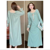 ネグリジェ パジャマ レディース 春秋新作 長袖ワンピース パジャマ ルームウェア 無地 大きいサイズネグリジェ フレア ロング丈ワンピ 部屋着 寝巻き ギフト xzxiaoyun227