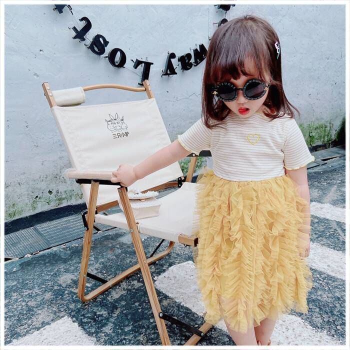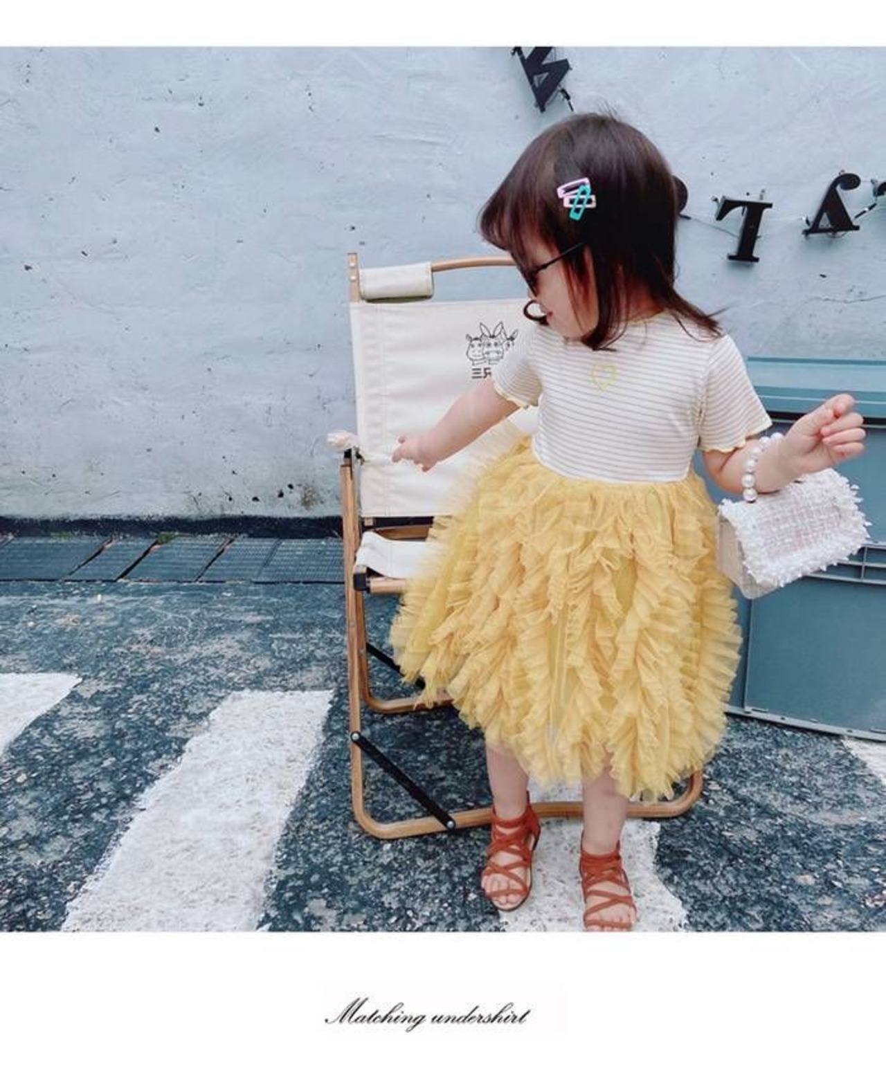 ワンピース チュニック チュールスカート ベビードレス ボーダー 女の子 ドレス 半袖 子ども かわいい 子供服 ベビー服 キッズ おしゃれ 保育園 誕生日 結婚式 入園式 入学式 卒園式 90cm 100cm 110cm 120cm 130cm 夏 litai06