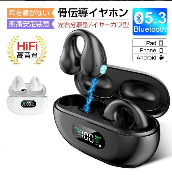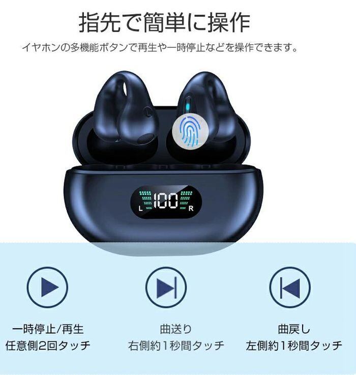 骨伝導イヤホン ワイヤレスイヤホン Bluetooth 5.3 イヤーカフ構造 挟んで装着 快適 完全ワイヤレスヘッドセット 自動ペアリング 瞬間接続 Hi-Fi高音質 ステレオサウンド マイク内蔵 TWS dianzik02 | オキナ商店