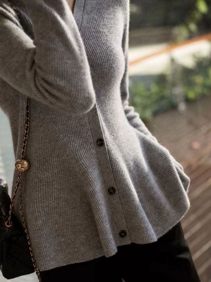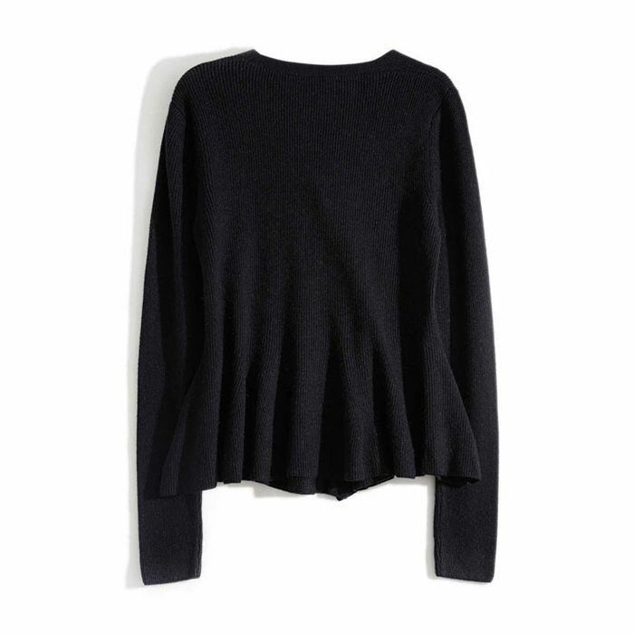 ペプラムデザインと深めのvネックで華奢見え♪