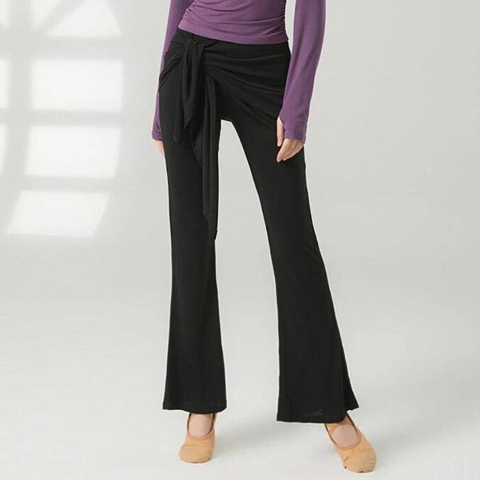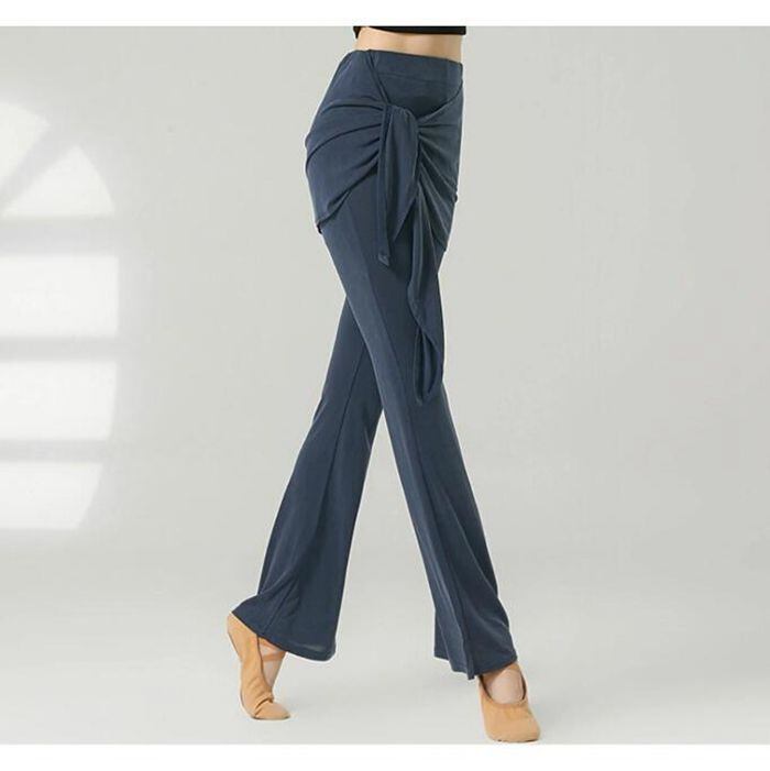ダンス パンツ パンタロン ロング パンツ レイヤード着 ヒップスカーフ付き ストレッチ ヨガパンツ ラテンダンス 社交ダンス パンツ 練習着 レッスン着 ハイウエスト 美腿ライン ベルボトム xzxiaoyun208