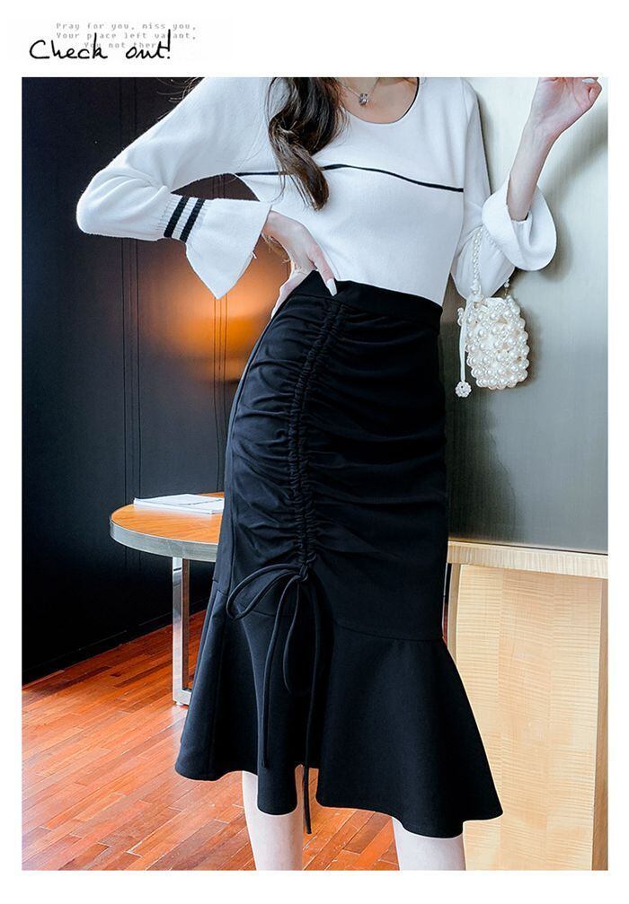 マーメイドスカート レディース スカート フレア 膝丈 春 夏 タイトスカート リボン ハイウェスト ボトムス 大人 通勤 OL オフィス オシャレ 20代 30代 40代 50代 黒