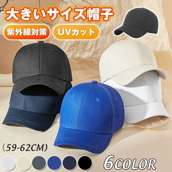 キャップ メンズ 大きいサイズ 帽子 59-62cm 無地 野球帽 コットン ゴルフ帽子 小顔効果 ベースボールキャップ UVカット 日焼け防止 遮光 紫外線対策 サイズ調整 日除け お出かけ プレゼント ランニング ジョギング 速乾 通気 ぼうし