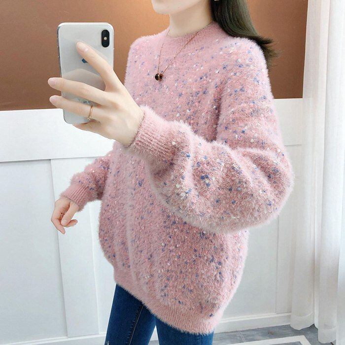 ニットトップス レディース シャギーニット セーター 長袖 雑色 ミディアム丈 春 秋 冬 厚手 ゆったり プルオーバー オシャレ 韓国風 大人 ニット 30代 40代 50代mkxz294 | オキナ商店