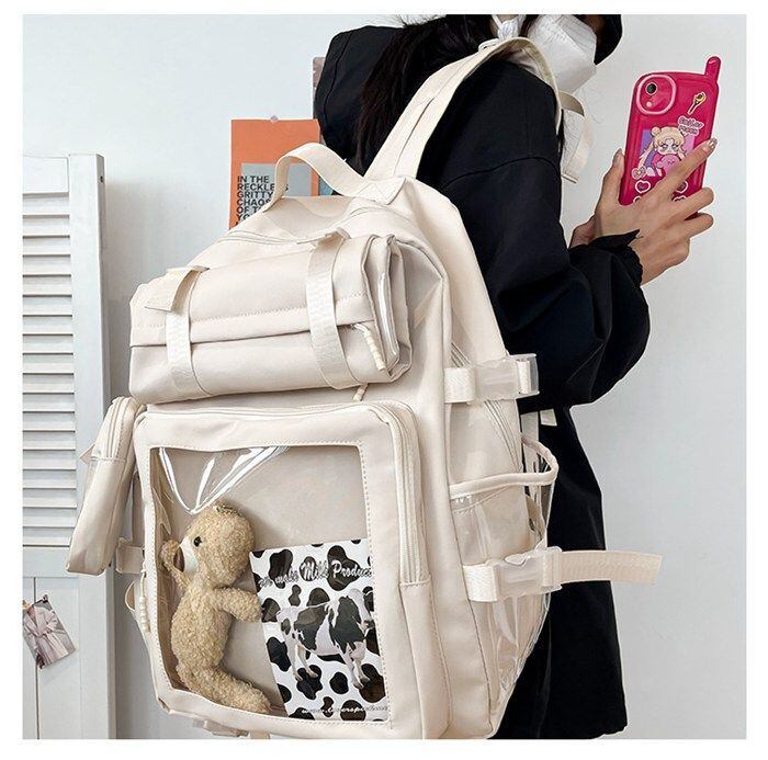 大容量 痛バッグ 3way 5色 リュック ショルダー ハンド 韓国 缶バッチ 通勤/通学 痛バッグ スクエア 痛リュック
