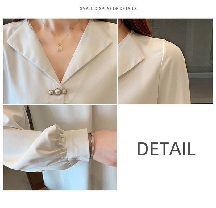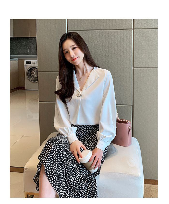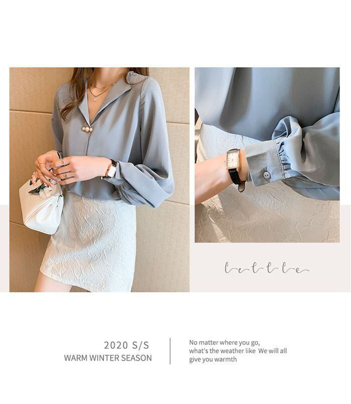 ブラウス レディース 長袖 無地 パール Vネック 春 夏 新作 パフスリーブ オシャレ シフォン トップス 韓国風 大人 オフィス 上品 通勤 OL ゆったり 20代 30代 40代 50代mkxz286 | オキナ商店