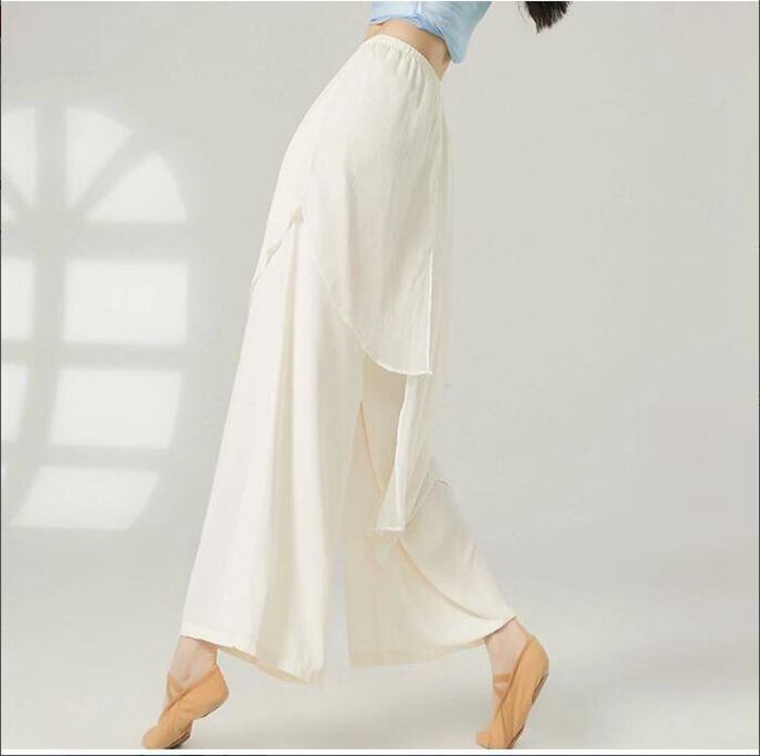 古典ダンス パンツ スカート風 ふんわり 不規則のスカーフ付き ロング丈 ワイドパンツ 飄逸 クラシカル レディース 中華古典ダンス チャイナ民族ダンス 社交ダンス パンツ エレガント レイヤード着風 ダンス 練習着 レッスン着 ゆったり 着痩せ xzxiaoyun211