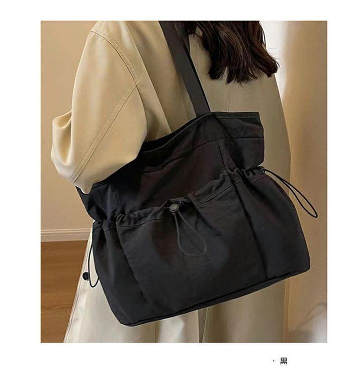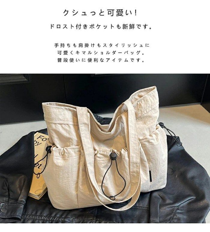 トート バッグ 肩掛け レディース 軽量 A4 ドロスト ショルダー バッグ 大容量 多収納 おしゃれ ナイロン 肩掛けバッグ カバン 黒 ベージュ 2way 手持ち 軽い ナイロンバッグ 通学 旅行 ショルダー xiaokb189 | オキナ商店