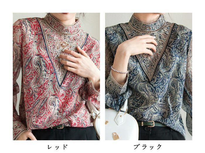ブラウス レディース レース 刺繍 パフスリーブ 長袖 トップス シャツ 大人 通勤 OL ゆったり オシャレ 春 夏 秋 新作 20代 30代 40代 50代