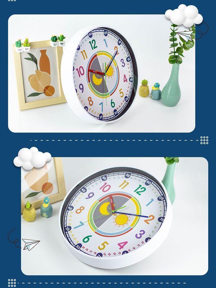 知育時計 壁掛け時計 丸型 直径30cm 静か 時計 アナログ 静音 学習時計 掛け時計 壁掛け 知育玩具 カラフル 大文字 時間管理 学習 キッズ 子供用 子供 こども 子ども おしゃれ かわいい 可愛い 教育 時間学習 子供部屋 リビング インテリア プレゼント ギフト