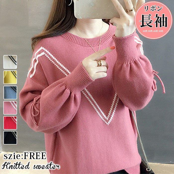 ニットセーター レディース 春 秋 冬 長袖 ニットトップス クルーネック ゆったり セーター リボン ニットソー オシャレ 大人 韓国風 20代 30代 40代 50代mkxz296 | オキナ商店